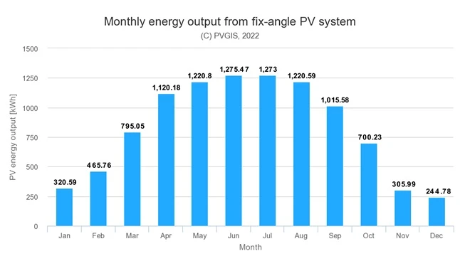 График годовой производительности, которую обеспечивают солнечные батареи, в кВт*ч: