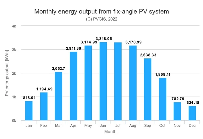 Графік річної продуктивності, яку забезпечують сонячні батареї, у кВт*год: